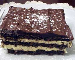 Refrigerate 24 hours, to allow time for the graham crackers to soften. Just before serving, sprinkle with powdered sugar, if desired.