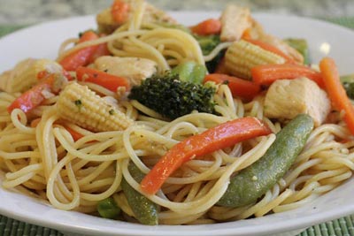 Add vegetables to the skillet with the chicken and cook until crisp-tender. * Make additional sauce if needed by combining 1/4 cup of dressing with 1 tablespoon of soy sauce.