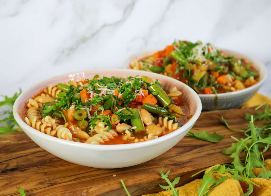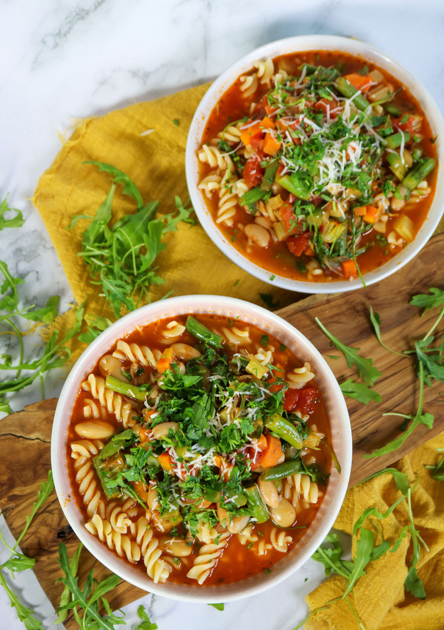 - This satisfying minestrone soup features a classic combination of fresh herbs, vegetables, white beans, and pasta. Although this recipe is delicious as written, don’t be afraid to experiment a bit with the ingredients. This dish is a great way to use up any extra fresh herbs and vegetables you have available.